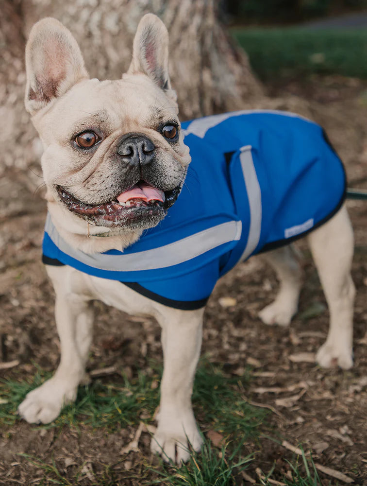 Secured with a Velcro strap at the belly and neck and featuring reflective stripes down back, neck and belly your dog will be the most stylish pup on the block.