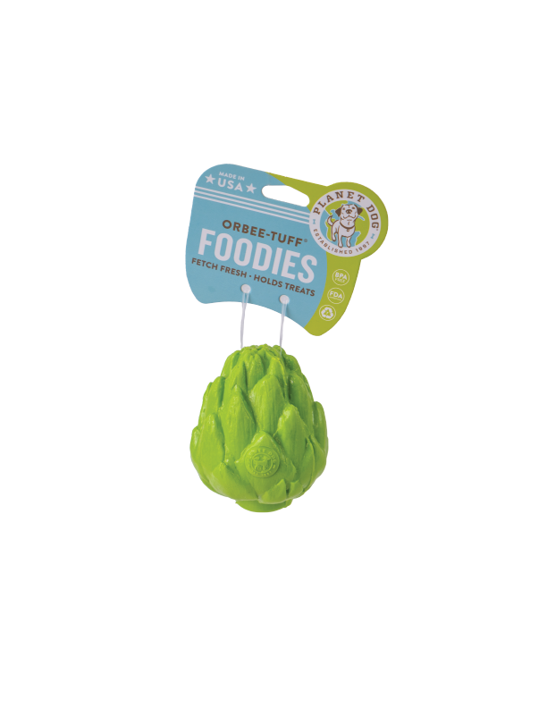 The Orbee-Tuff® Artichoke is a delicious part of the best-selling Orbee-Tuff® Produce Line. This nutritious morsel is perfect for medium sized dogs and offers a unique texture for added fun. The Treat-Spot makes it perfect for stuffing with Planet Dog Eats, offering dogs bushels of fun!