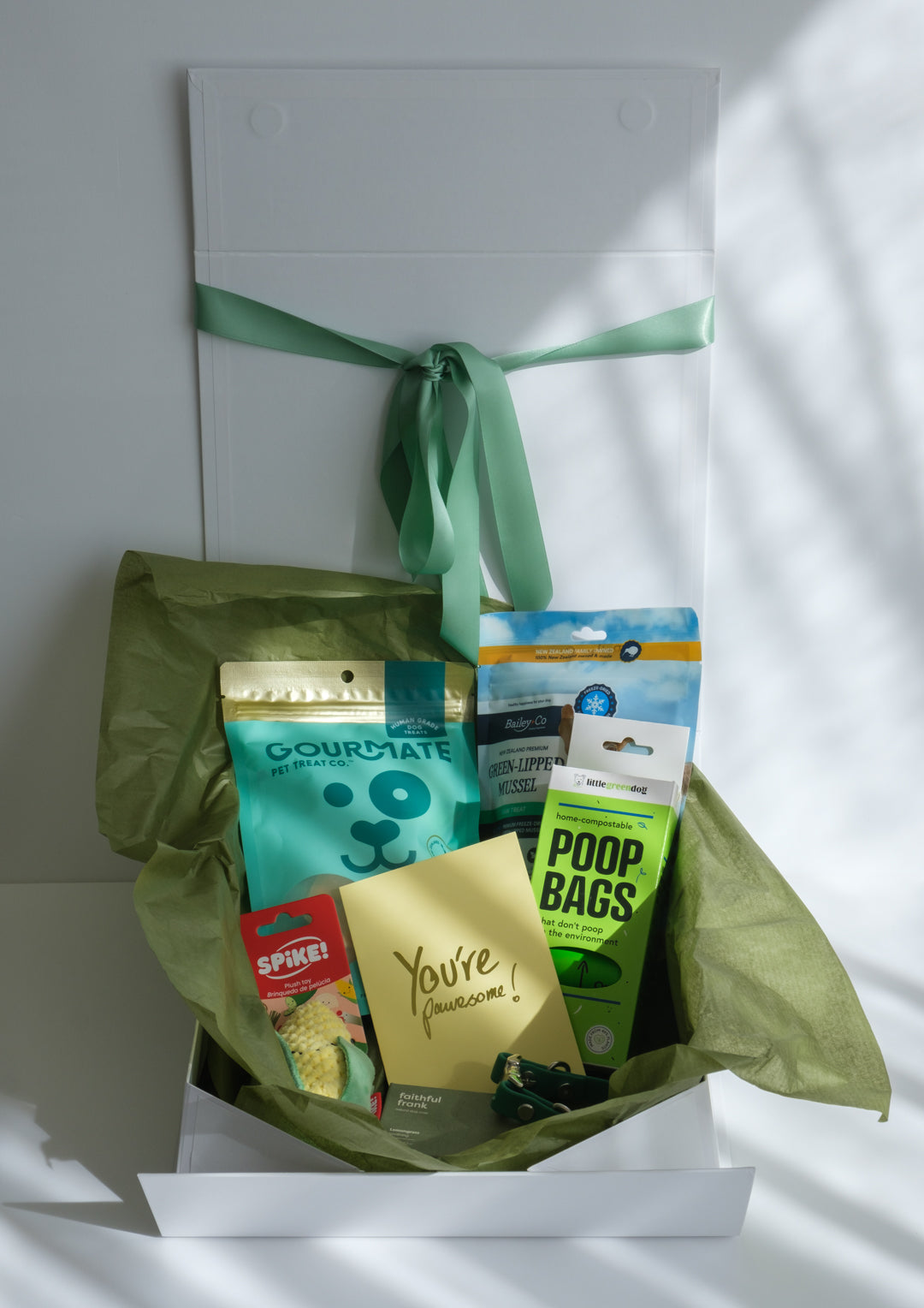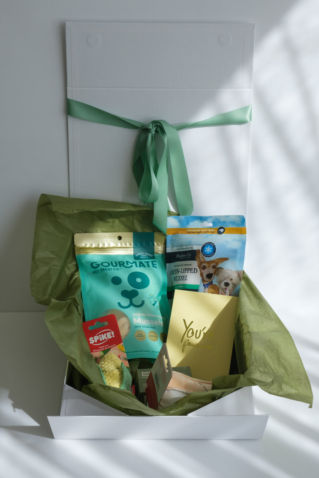 Our Smack Bang collection gotcha gift boxes are carefully designed to suit any dog. Delivered in a white magnetic hinged box, this box features a card, tissue and satin ribbon. The box will be shipped in a normal cardboard shipper.