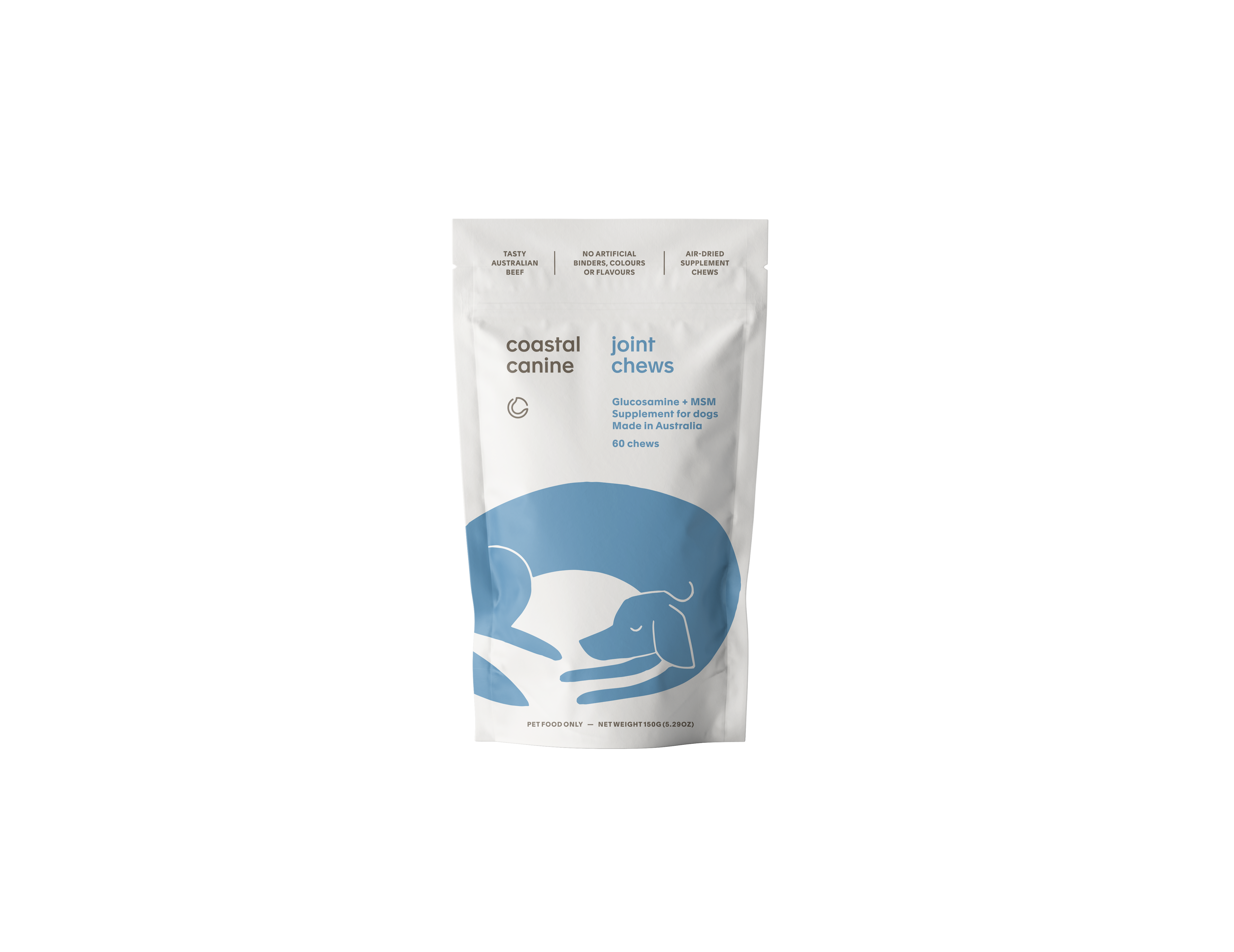 Coastal Canine Joint Chews are made with real Australian beef and contain Glucosamine and MSM to support cartilage, flexibility and comfortable movement.