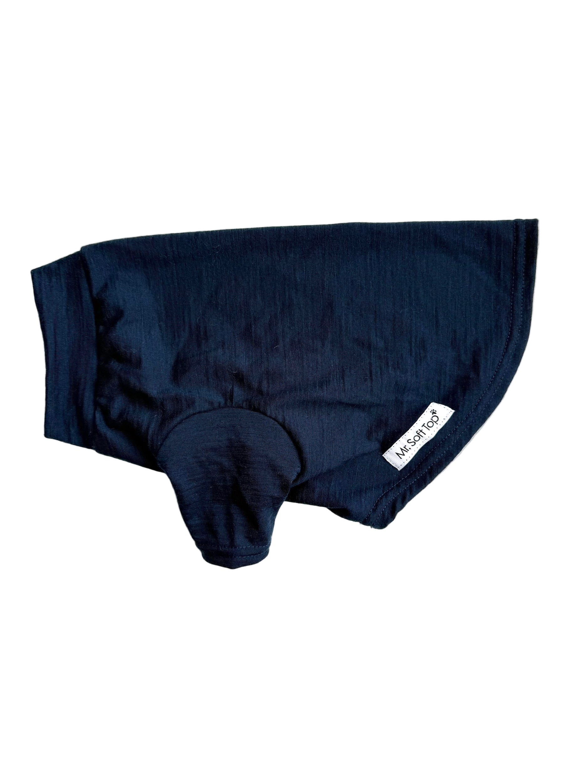This soft dark Navy 100% merino tee will keep your pooch warm this winter. The colour looks great on dogs of all colours. This will be your go with everything tee this winter. Perfectly comfortable to sleep in at night or to run around in during the day. This is a lovely light weight merino with a standard amount of stretch. Fit is true to size.