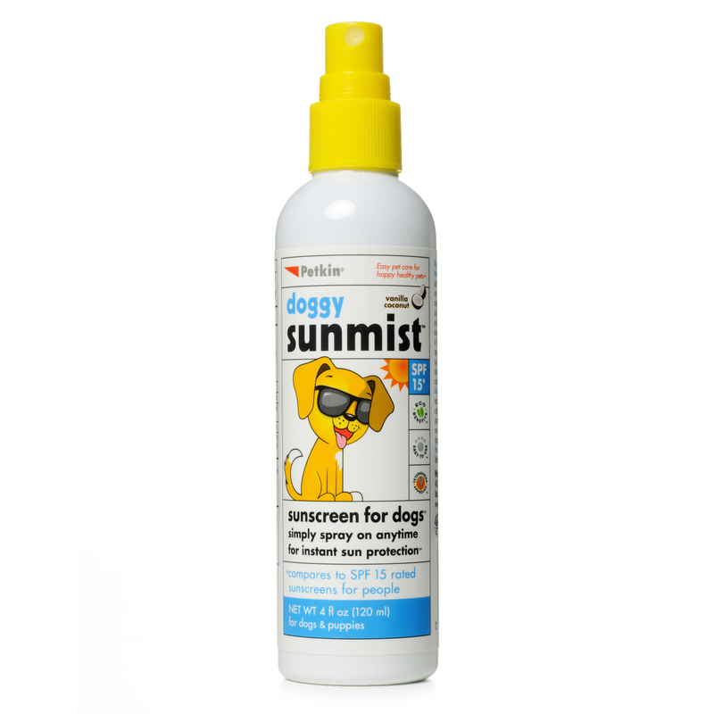 Sunscreen for dogs! Yes, even they need sunscreen too. Simply spray on anytime for instant sun protection. Compares to SPF 15 rated sunscreens for humans.