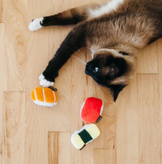 You’ll have to paw-don your kitty’s manners as they dig into these delicious USDA Organic Catnip-filled plush toys by P.L.A.Y. – live in the meow-ment and treat yo’ cats to their favourite foods!