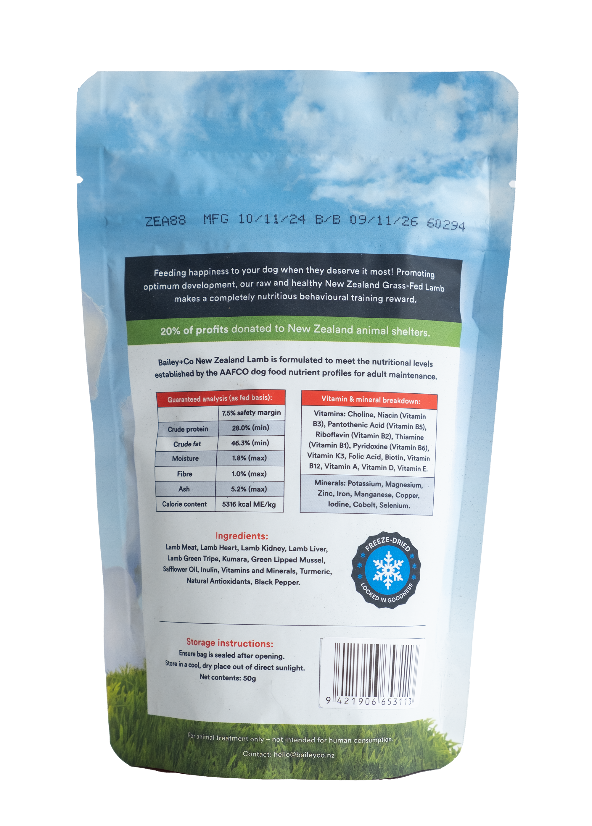 Ingredients: Lamb meat, lamb heart, lamb kidney, lamb liver, lamb green tripe, kumara, green lipped mussels, insulin, natural antioxidants and tumeric.